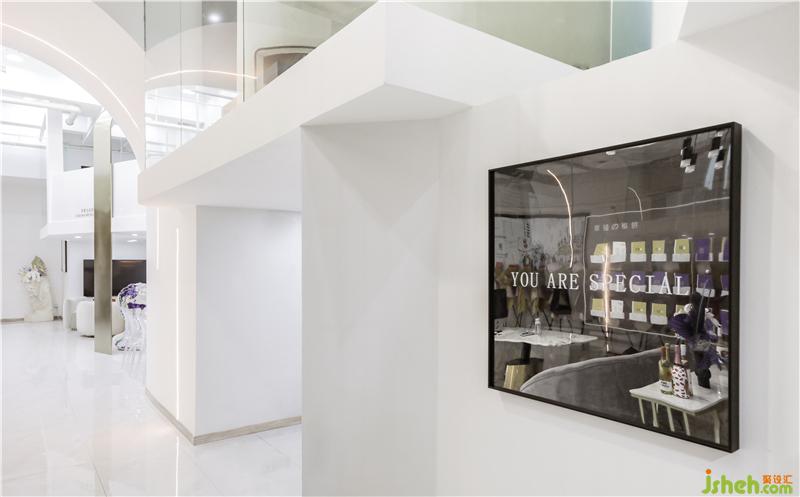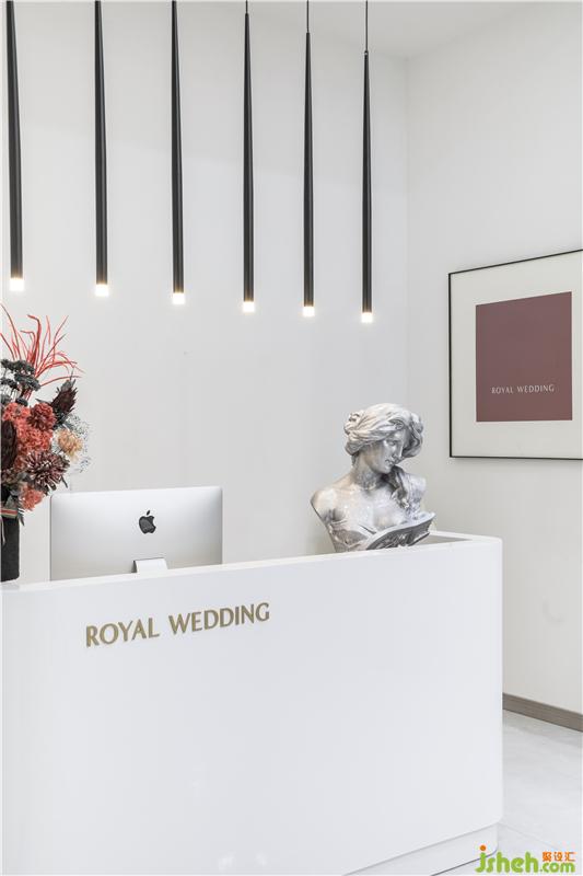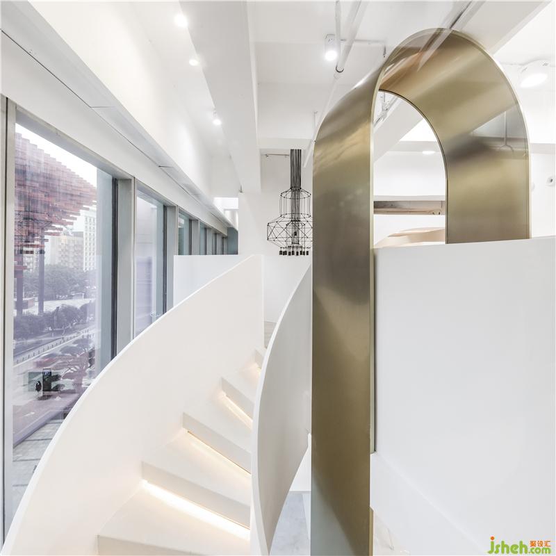 金色本身也為純白色的空間帶來一抹溫暖。