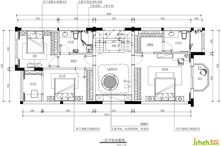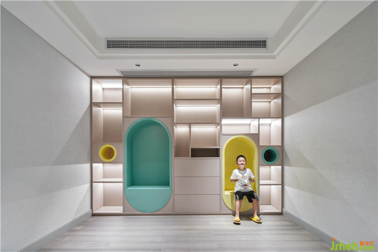 二樓是屬于孩子們的娛樂天地,配置完善的私人空間做到了休閑學(xué)習(xí)兩不誤。公共空間則是共同的娛樂區(qū),孩子們可以在這個(gè)空間中盡情的玩耍,編織自己那天馬行空的夢想。