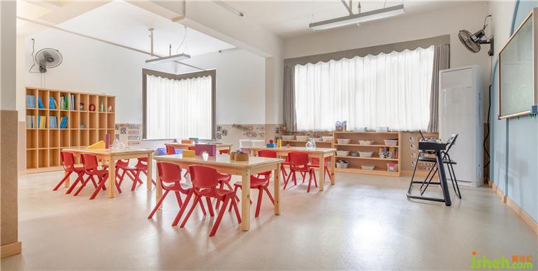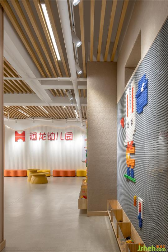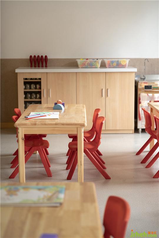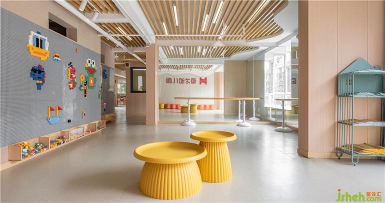 我們大面積的運(yùn)用了可后期靈活改造的砧板作為墻面裝飾,可用于展示孩子們的藝術(shù)作品,張貼字畫,讓孩子們能體會到親手搭建自己的校園的快樂,增加了他們的參與感與對藝術(shù)的敏感度。
