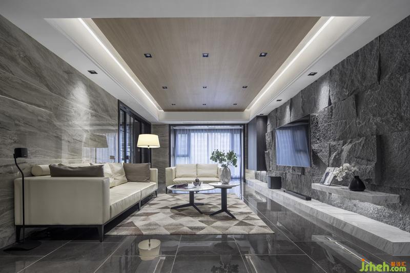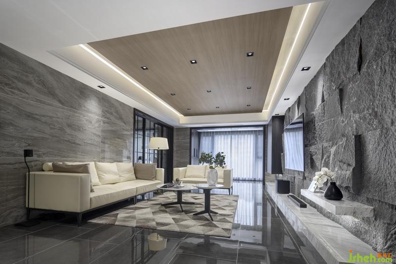 空間采用了天然毛石,木質(zhì)飾面板,天然大理石,石材瓷磚等