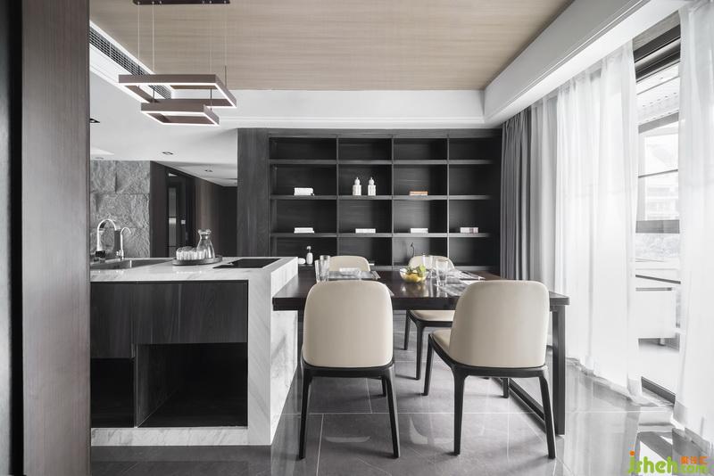 1:餐廳拆除L型原墻處理為餐柜及酒柜 餐區(qū)增加吧臺(tái)電池爐 讓就餐區(qū)更為豐富