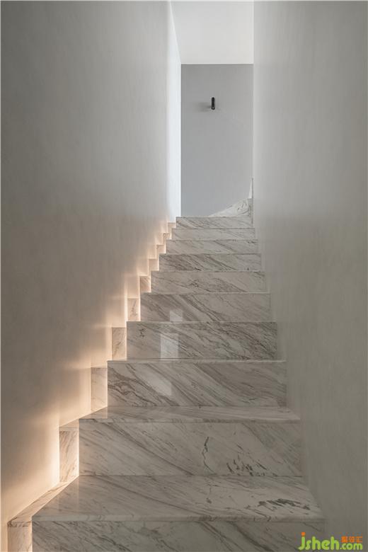 二樓擁有4米7的層高,我們將二樓規(guī)劃為休息區(qū),同時增加三樓臥室套房。并單獨設(shè)計了一個從室內(nèi)通往二樓的樓梯,搭配聲控的燈光,在爵士白的樓梯臺階上投射出暖暖的光影,每天都感受家居帶來的極致浪漫。