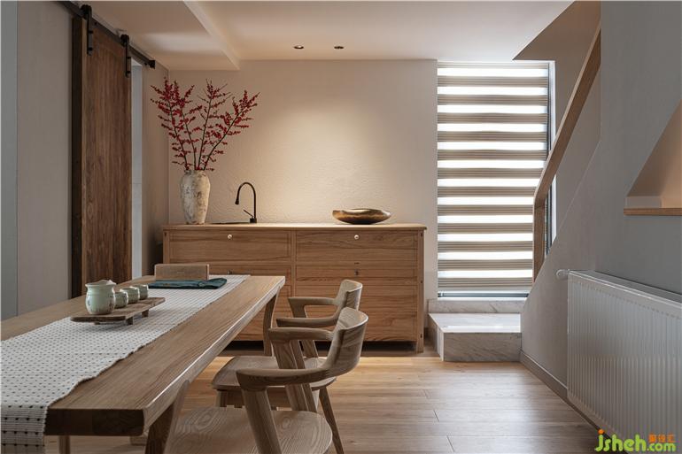 休息區(qū)是給人思考的寂靜之地,斑駁的光影給這個角落帶來勃勃生機,家裝設(shè)計大面積的白色和原木色桌椅相結(jié)合,似乎在這個地方可以隔離一切塵世喧囂。