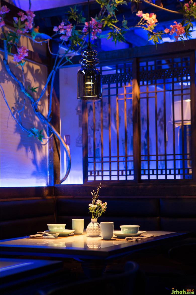 室內(nèi)設(shè)計師采用古人借景手法,層層交錯,形成花前廊下,一步一景的格局,再配以燈光,流水,動畫等,構(gòu)建起一個傳統(tǒng)又不失現(xiàn)代感的餐廳。