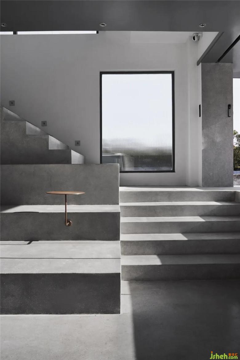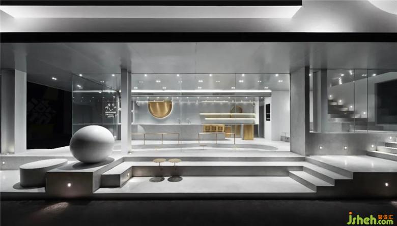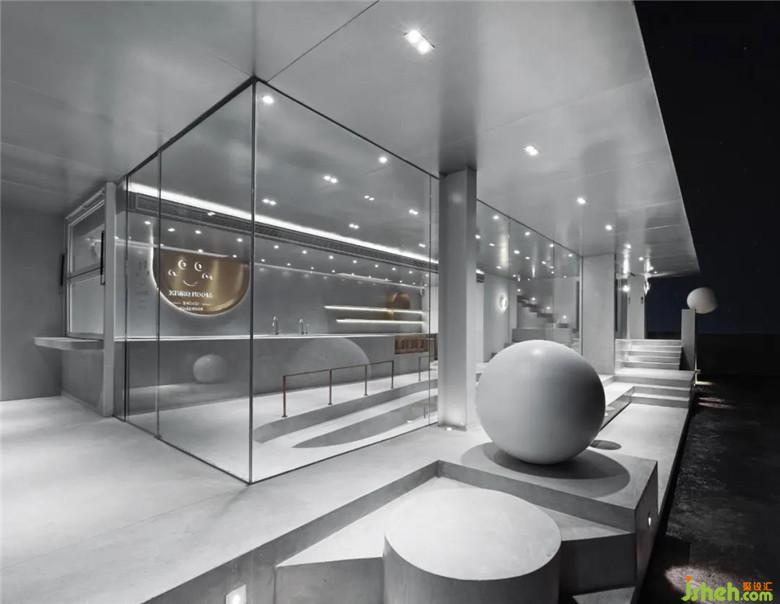 夜晚從外部觀察,整個(gè)一層成為一個(gè)透明的發(fā)光體,裝修公司使建筑呈現(xiàn)懸浮的狀態(tài),營(yíng)造出具有強(qiáng)烈記憶點(diǎn)的視覺效果。