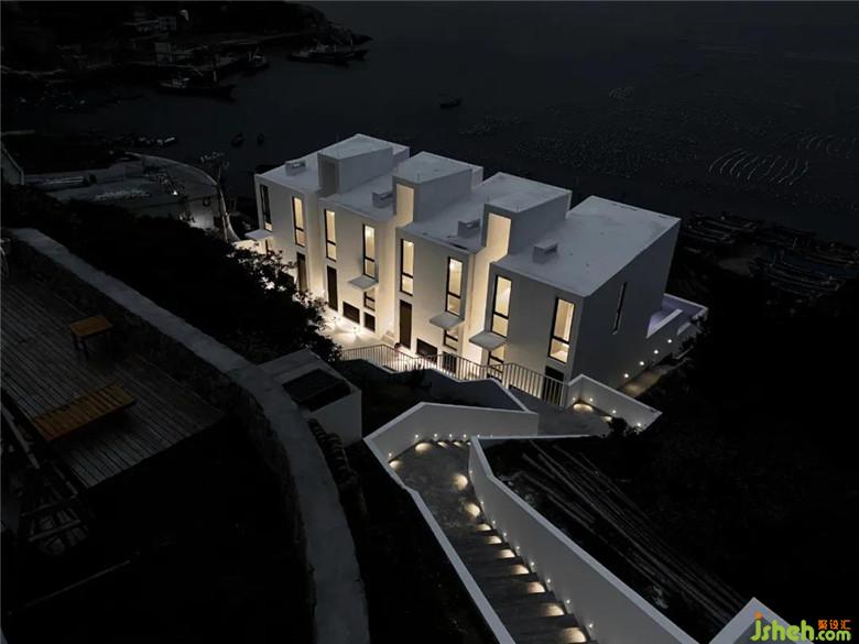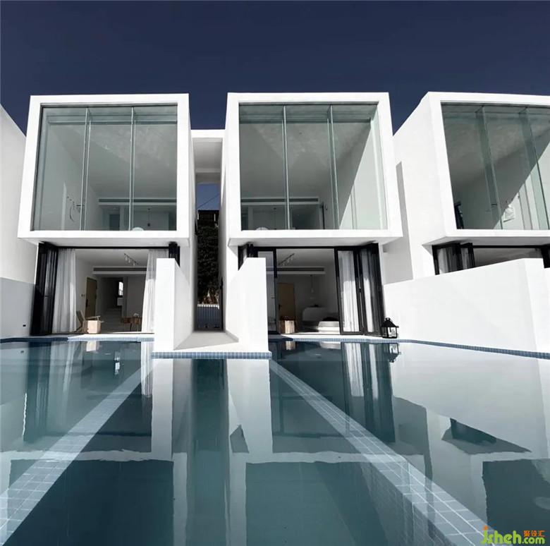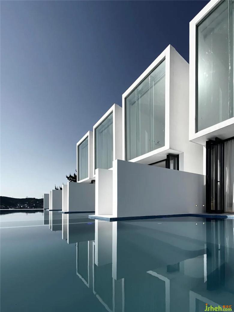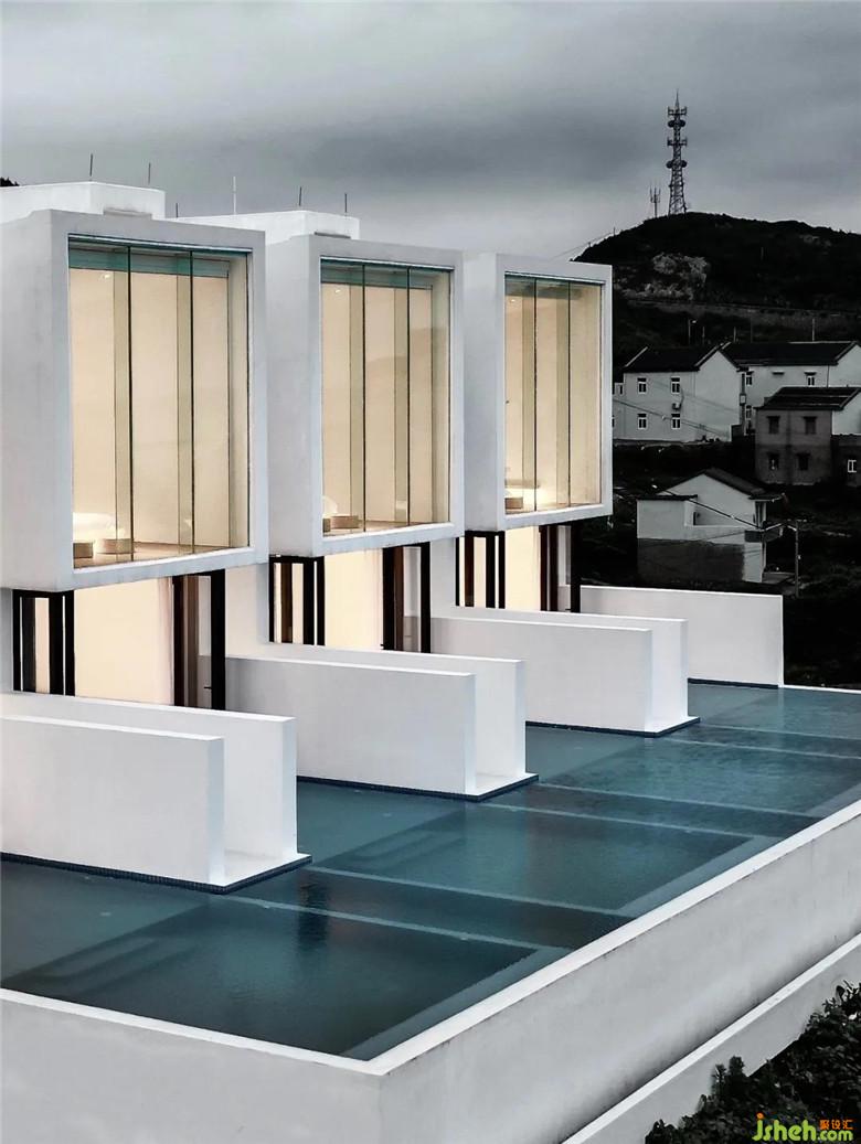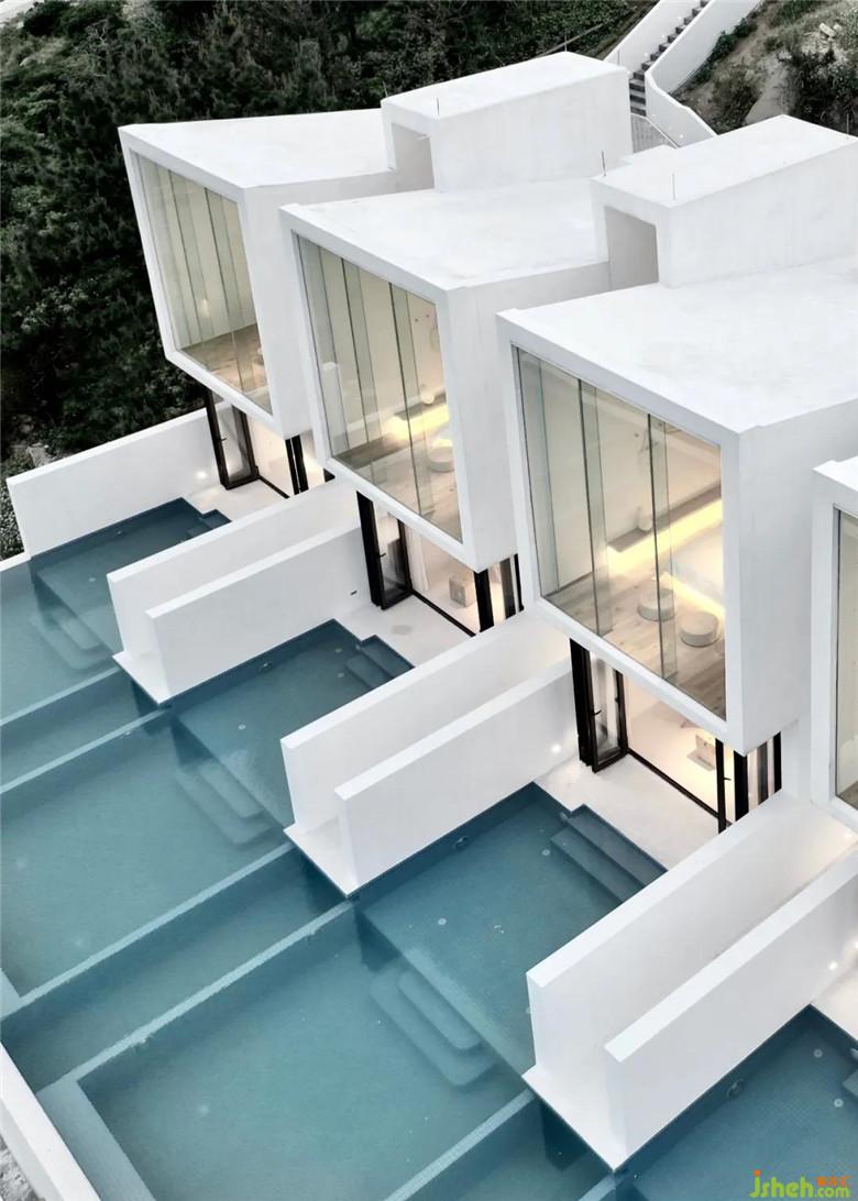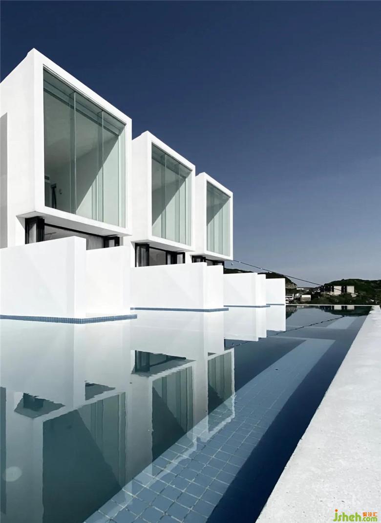 酒店設(shè)計之初,考慮到場地的特殊性與施工條件,決定選用傳統(tǒng)的混凝土框架做為基本結(jié)構(gòu)體系以應(yīng)對島上復雜的氣候環(huán)境,在形式上以精簡的白色殼體作為對場地的回應(yīng)。