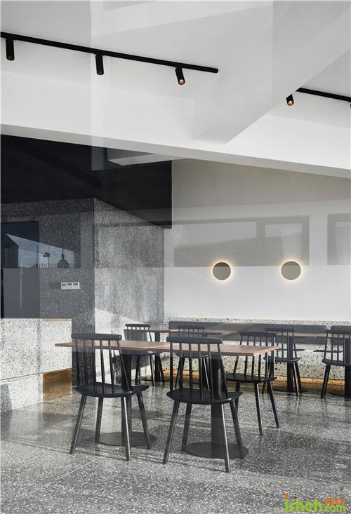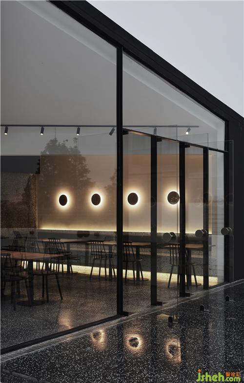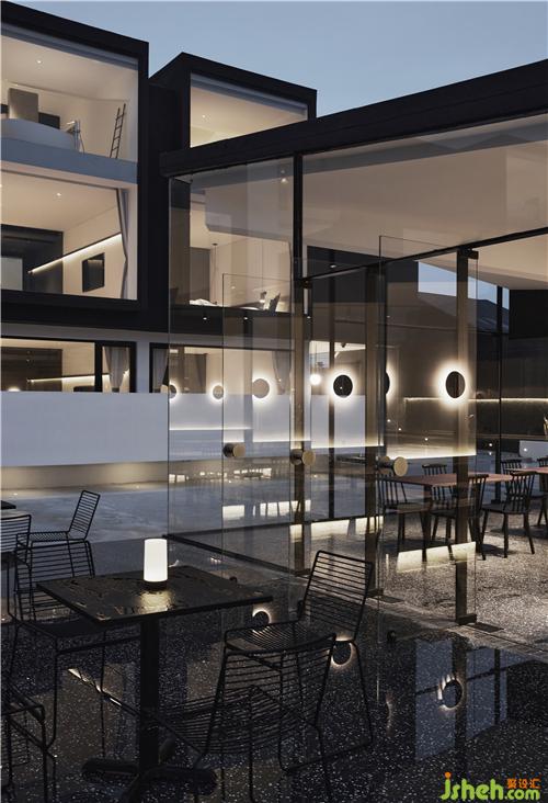 餐廳部分沿用整體的黑色基調,在8m*8m的建筑紅線內,利用對角拉出整個屋面的受力結構體,使整個屋面呈現(xiàn)懸浮感,上海酒店民宿設計斜面的處理也弱化了由于尺度限制所帶來的空間局促感,在視覺上形成多維度的空間縱深感。