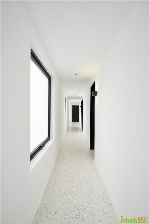 將輔助空間作為整個建筑的通道路徑,串聯(lián)起各個功能區(qū),受制于場地條件,上海酒店民宿通道呈現(xiàn)狹長的形態(tài),裝修設計上,以純白色柔和光線不足帶來的幽閉感,二層部分使用了挑高處理,增加空間的層次,頂面狹長的天窗將自然光線引入通道,給行走的路徑帶來一份不確定的驚喜。