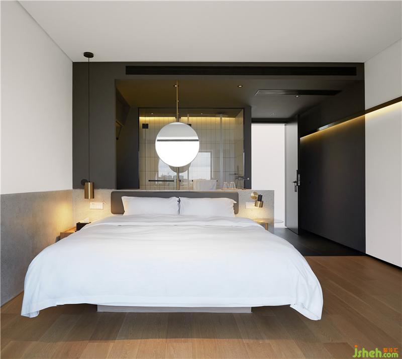 作為主體的住宿空間,采用模塊化設計方式,在節(jié)約成本的同時方便施工管理,17個房間共分5個模塊處理,上海酒店民宿裝修設計用極簡的手法與建筑形成統(tǒng)一關系。