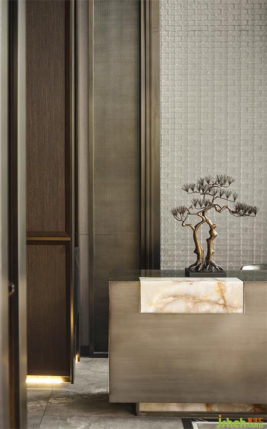 水紋玻璃、金屬隔斷、原木、大理石不同材質(zhì)的碰撞,強(qiáng)調(diào)細(xì)膩的變化對(duì)比,營(yíng)銷中心設(shè)計(jì)營(yíng)造不同的空間藝術(shù)。