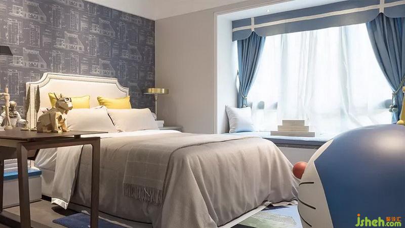 步入女孩房,粉色的背景搭配細(xì)膩的金屬葉子的配飾,飄窗和紗簾加強(qiáng)空間的裝飾性,給兒童空間補(bǔ)充了活力,增加空間的趣味。男孩房主調(diào)藍(lán)色,輕快活潑,藍(lán)色誘發(fā)人們的浪漫幻想,宇航服模型人讓小男孩的太空夢(mèng)提前實(shí)現(xiàn),源源不斷的自然靈感匯聚一堂形成男孩房設(shè)計(jì)的獨(dú)特風(fēng)格。