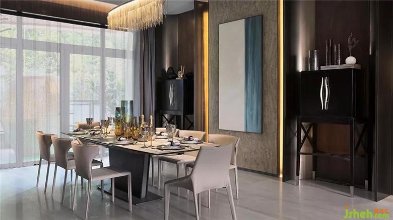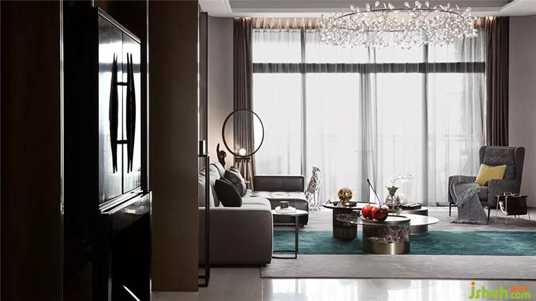 軟裝手法采用混合、疊加、錯位、裂變、象征、隱喻等。創(chuàng)造溶感性與理性創(chuàng)造、集傳統(tǒng)與現(xiàn)代于一體“亦此亦彼”的室內(nèi)環(huán)境。在配飾設(shè)計上,采用了抽象的裝置擺件與超現(xiàn)實主義的掛畫相呼應結(jié)合木、布藝、皮革、玻璃等材質(zhì),演繹一種極致而時尚生活方式。