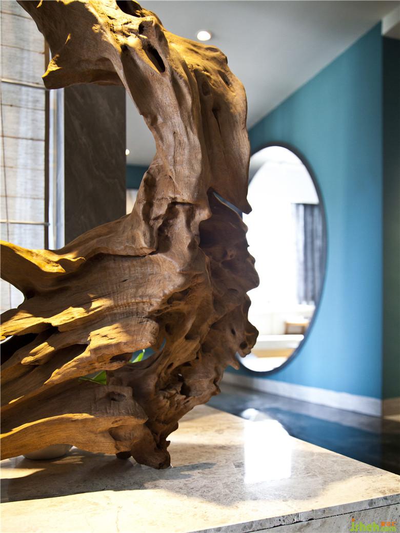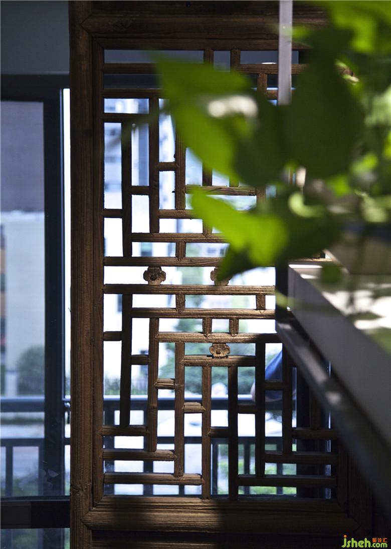 因?yàn)閷衔锛那橛歇?dú)鐘,幾扇老門窗通過現(xiàn)代設(shè)計(jì)手法賦予其新的使命,斑駁帶有歲月痕跡的老水缸、殘缺的小石磨、質(zhì)樸的朽木根、生機(jī)盎然的小綠植......古今碰撞,禪意漸濃。