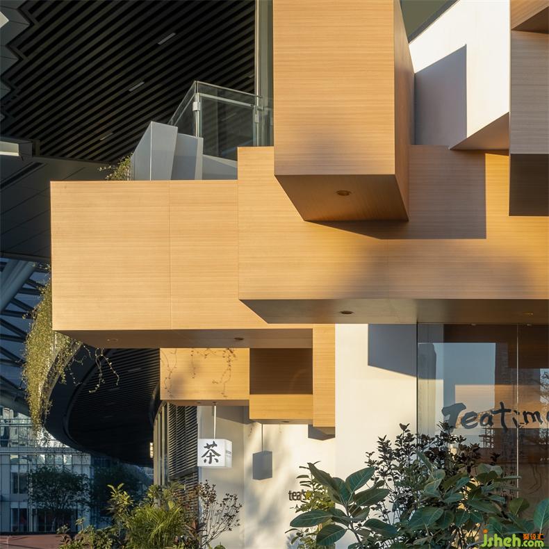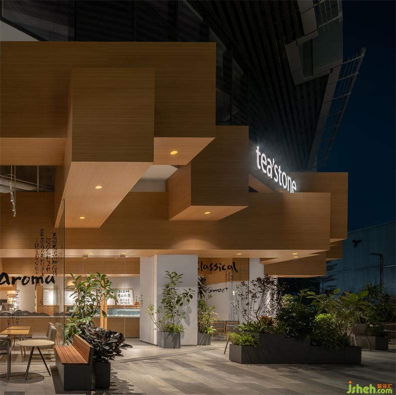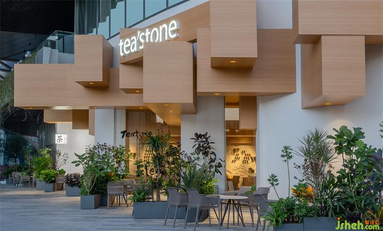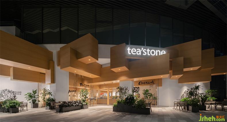 萬(wàn)象前海是tea'stone在深圳的第5家門(mén)店。室內(nèi)設(shè)計(jì)師店鋪位于商場(chǎng)一層最東側(cè)的入口廣場(chǎng)位置,這是可資利用的資源。建筑外立面為弧形幕墻,氣質(zhì)上不太符合品牌調(diào)性;左側(cè)上方的挑臺(tái)侵入商鋪門(mén)頭招展面,于設(shè)計(jì)而言,是很大的不利因素。