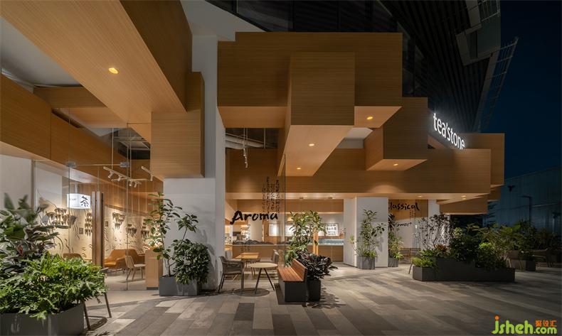 普悅設(shè)計(jì)從氤氳升騰的茶氣中,捕捉到空間設(shè)計(jì)的靈感線索。古有“余音繞梁”,今有“茶香繞梁”,跨越千年的秦漢殿堂梁柱,如靈光閃現(xiàn)般來(lái)到眼前,仿佛依地而生,剛好能彌補(bǔ)場(chǎng)地的缺陷,構(gòu)建出由內(nèi)而外高度一致的空間感。