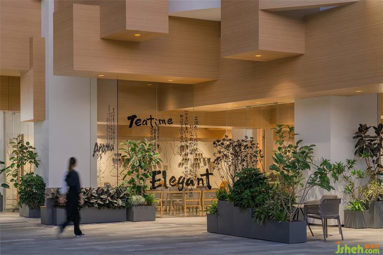 普悅設(shè)計以現(xiàn)代手法表現(xiàn)秦漢梁柱,榫卯結(jié)構(gòu)融入其中,梁由室內(nèi)空間生長至外立面,形成足以擊穿時空的壯闊感,也帶來Christopher Nolan式的未來意境,形成tea'stone獨有的文化氣候和“茶香繞梁”的古今意境。