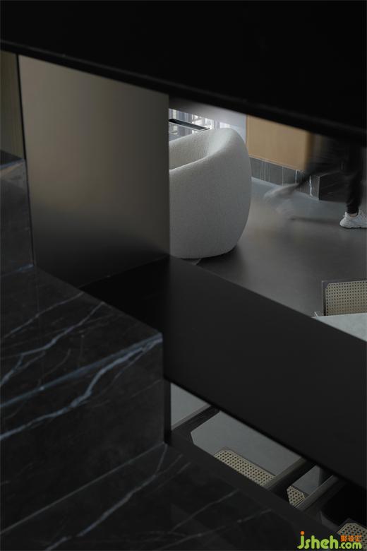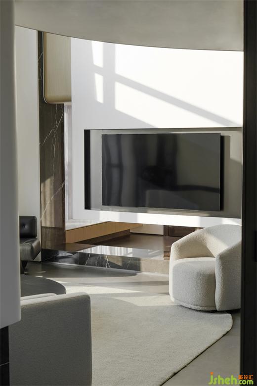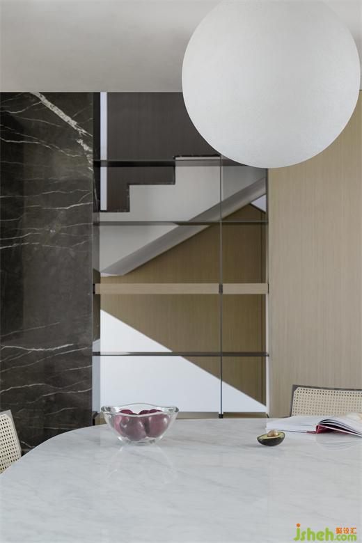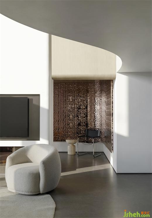 東莞住宅設(shè)計(jì)流暢的線條與靜止的水波裝置,一靜一動(dòng)之間巧妙地展開空間的前行動(dòng)線,指引著居住者抵達(dá)下一處目的地。