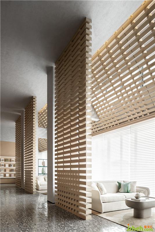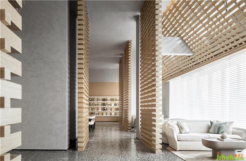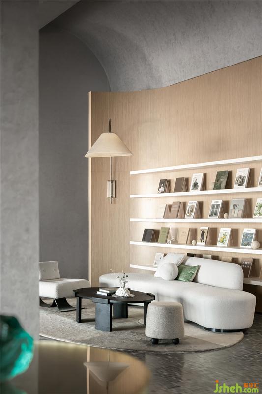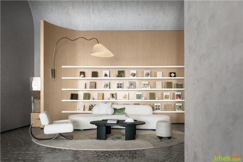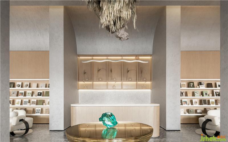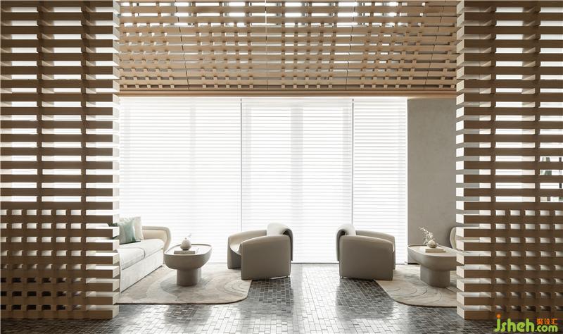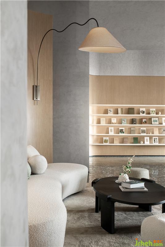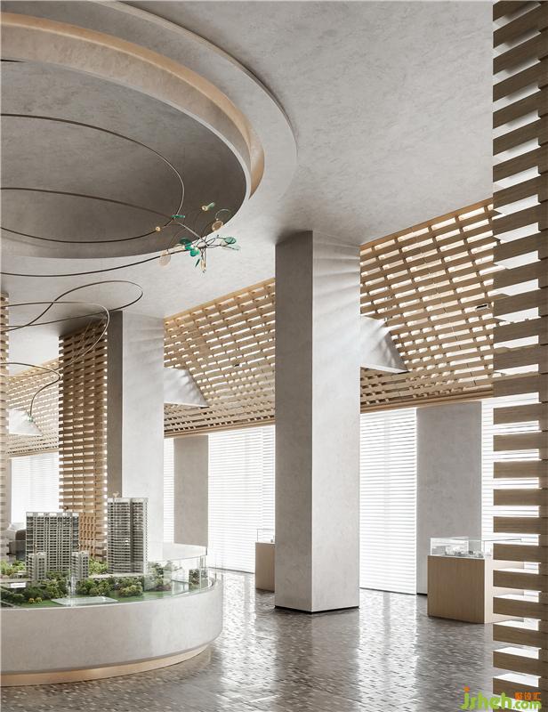 木材的大面積律動(dòng)應(yīng)用,溫暖而寧?kù)o;立面及頂面定制調(diào)配的藝術(shù)涂料,影影綽綽、細(xì)膩層次的暗紋圖形,奠定了整個(gè)空間的柔和性、優(yōu)雅度和親密感深圳售樓處設(shè)計(jì)。