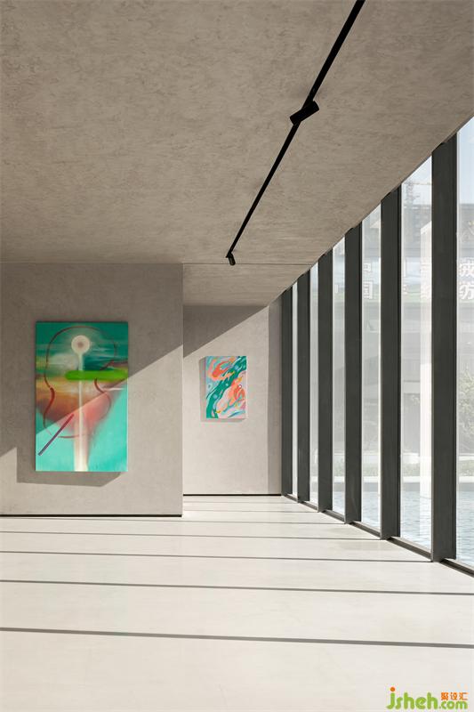 好的建筑應(yīng)該能夠自由地生長(zhǎng)。藝術(shù)館建筑共六層,地面四層,地下兩層,兼具展覽展示、游客接待、洽談接待、原創(chuàng)品牌館等功能。隨著時(shí)間的推移,未來(lái)社會(huì)形態(tài)及行業(yè)形態(tài)的發(fā)展,藝術(shù)館的功能或許會(huì)發(fā)生改變,在設(shè)計(jì)中考慮未來(lái)可變化性及可持續(xù)性是關(guān)鍵??刂撇槐匾难b飾和設(shè)計(jì)技巧表現(xiàn),呈現(xiàn)出最接近本質(zhì)的純粹和理性。建筑內(nèi)部盡量選用不對(duì)空間產(chǎn)生干擾的材料,力求用最少的材料創(chuàng)造出一種符合空間形態(tài)的氛圍。我們相信材料的統(tǒng)一性能讓空間產(chǎn)生更強(qiáng)的表現(xiàn)力。