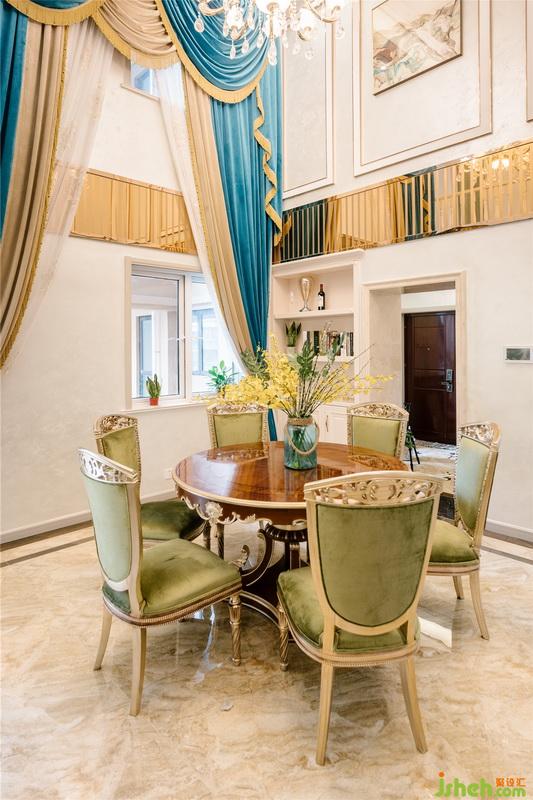 綠色是最能展現(xiàn)自由新生激發(fā)活力因子的顏色,充滿著治愈效果,將人的思緒帶到更廣闊的天地;而金色則將視覺拉回華麗都市,感受時(shí)尚的視覺效果和精致的生活氛圍。硬裝造型上貫穿始終的金色和軟裝上不同層次的綠色,將精致生活細(xì)膩表達(dá)。