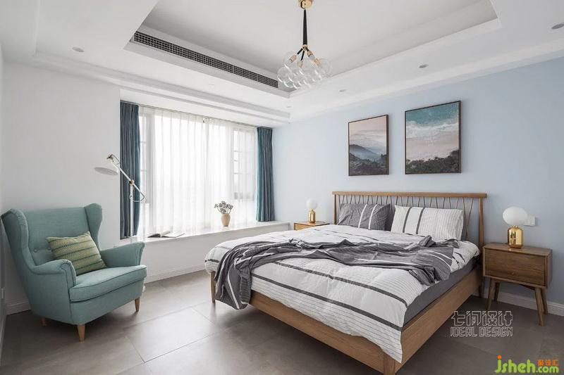 主臥室包括了休息區(qū)、衣帽間、梳妝臺(tái)、衛(wèi)生間,空間遵循less is more的原則,和公共區(qū)域一樣,除了為布光和隱藏設(shè)備而做的吊頂之外,沒有任何造型,就連家具的樣式也選擇了最自然最簡潔的設(shè)計(jì)款。