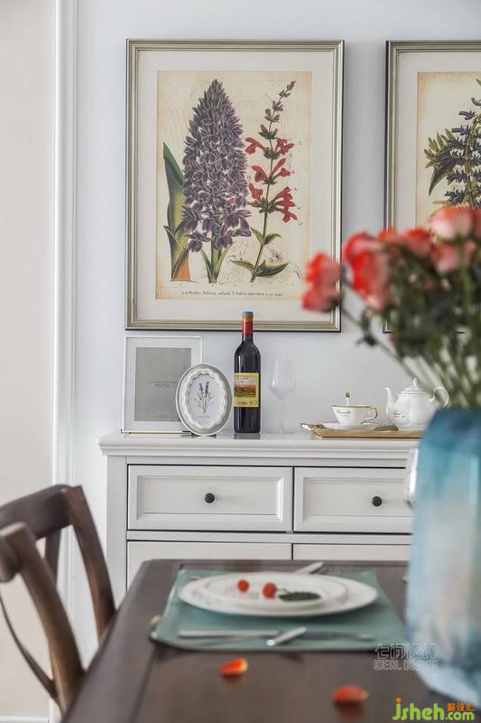 對于喜歡宅在家里的業(yè)主來說,享受美味除了好的廚房,餐廳也非常重要,雙餐邊柜既擴(kuò)大儲物,也能平衡裝飾空間,再通過飾品陳設(shè)營造浪漫的用餐環(huán)境。