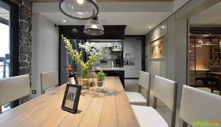 餐廳,這張可以看到冰箱位置,把冰箱放在外面,第一考慮到現在冰箱放廚房比較占廚房臺面位置,還有一點放外面相對來說冰箱會比較干凈,平時在外面拿東西也方便。
