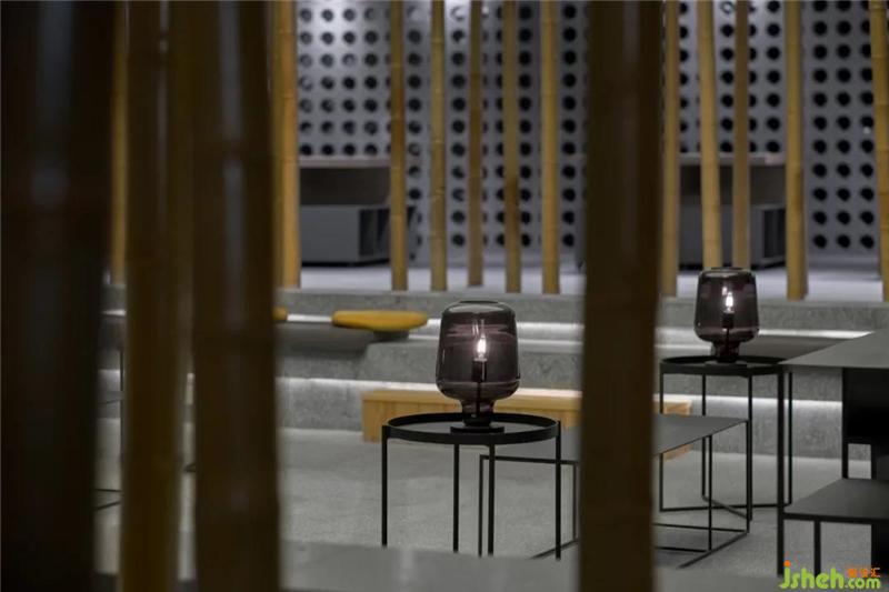 材料及品牌:磨石、竹子、陽(yáng)光板、水波紋鏡面不銹鋼、空心砌塊磚、科定木飾面