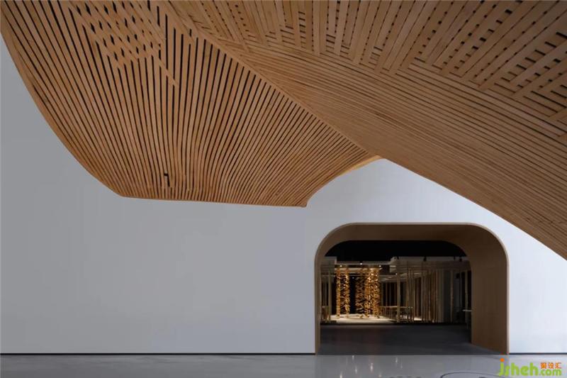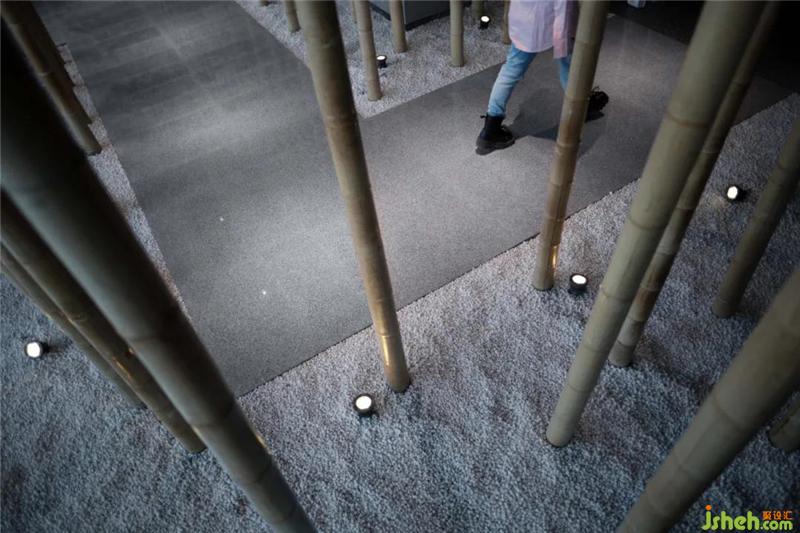 二層采用曲線異形的靈動(dòng)布局,與首層形成對(duì)比關(guān)系。借鑒紹興山水自然形態(tài),仿佛游走在書的山水之中。蘇東坡說過,寧可食無肉,不可居無竹,文人雅士對(duì)竹子的喜愛由來已久。北京裝修設(shè)計(jì)因此本案以“竹林賞書”為靈感營(yíng)造一種文人雅士的書店。蜿蜒的竹林擁有線條之美,亦有流水曲觴之感,然后是下沉式閱讀區(qū),亦可作為雅集活動(dòng)分享區(qū),形成了A面書店,B面生活方式體驗(yàn)店。