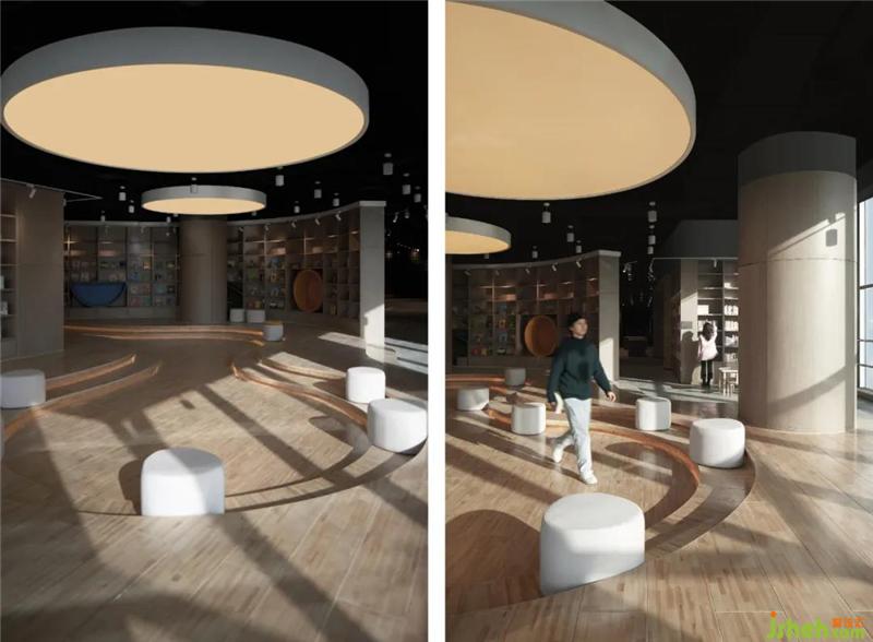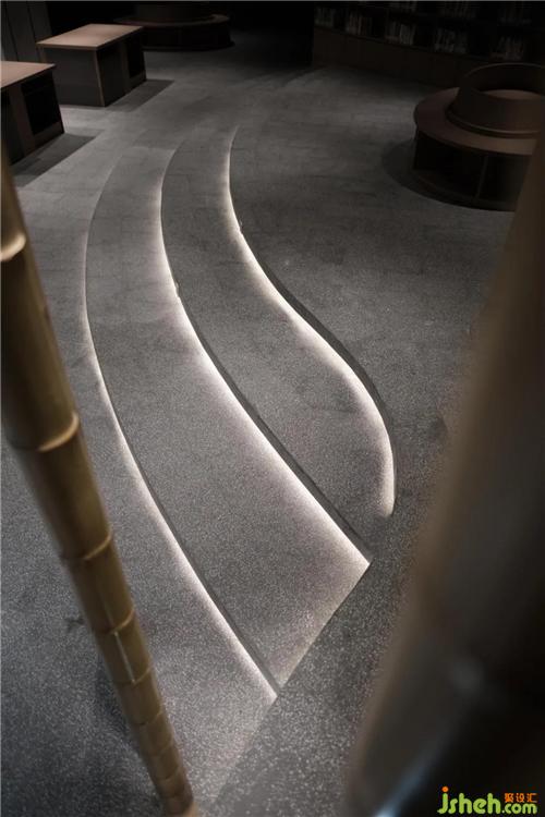 空間色彩以黑白灰為基調,穿插木色和現(xiàn)代的金屬色,用自然的材質和現(xiàn)代工業(yè)感的材質對比,致敬經(jīng)典,傳承經(jīng)典。童書繪本區(qū)在自然光線可以灑進來的區(qū)域里,書架高度恰好是讀者抬手可觸及的位置,較矮的梯步與燈帶都恰到好處。史蒂夫·喬布斯說:創(chuàng)意就是把所有微小的點連接起來。然后平靜淡然,向文字和生命提出了平等對話的邀請。