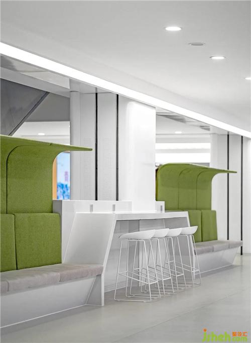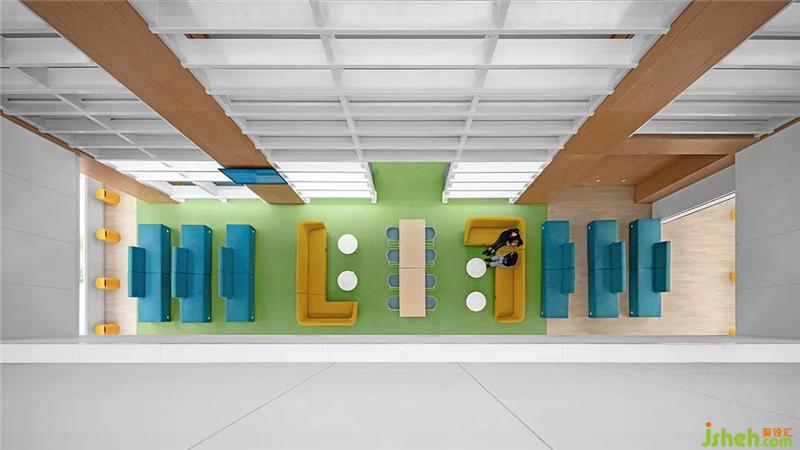 市民服務(wù)大廳的功能組織與各種活動(dòng)息息相關(guān),所以簡(jiǎn)潔、清晰的流線組織以及明顯的等待區(qū)域設(shè)計(jì)都至關(guān)重要。我們希望通過室內(nèi)色彩設(shè)計(jì)為使用者提供清晰明確的室內(nèi)引導(dǎo)。辦公室設(shè)計(jì)因此我們將彩虹漸變作為基礎(chǔ)配色元素植入室內(nèi)空間中。不同樓層的標(biāo)識(shí)、窗口指示牌以及家具都遵循統(tǒng)一種色彩漸變?cè)瓌t,這樣的空間色彩搭配從潛意識(shí)中引導(dǎo)市民快速準(zhǔn)確的定位自己所在的位置,引導(dǎo)他們到達(dá)最終的目的地。