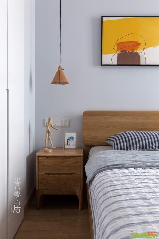 拆除原建筑飄窗,增加臥室的使用面積,工字鋪貼木地板。