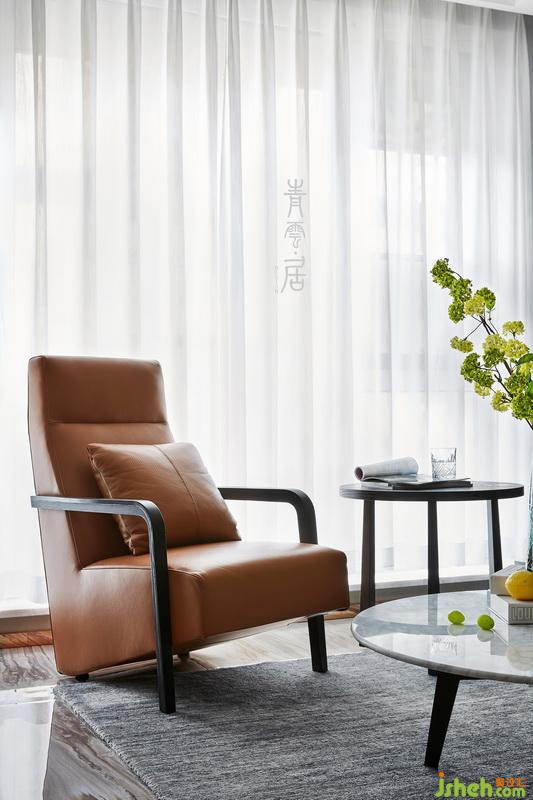 ▲當(dāng)我們室內(nèi)設(shè)計(jì)師環(huán)顧房屋時(shí),現(xiàn)代感中精致與細(xì)膩穿梭自如,獨(dú)特的棕、灰色調(diào)性,加上金屬線條與藍(lán)色皮質(zhì)座椅,黑色邊幾、餐桌,都營造出專屬的個(gè)人感。
