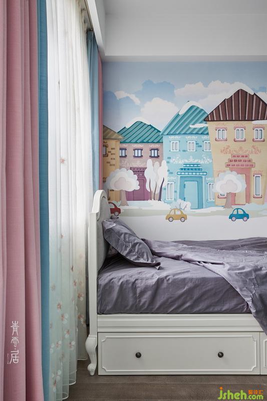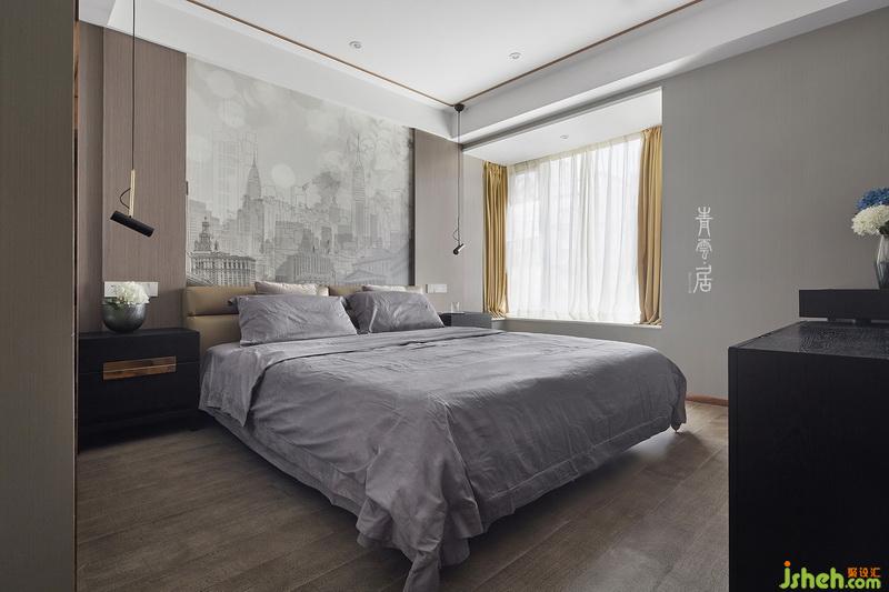 ▲臥室地面工字鋪貼木地板,空間上使用點(diǎn)光源式筒燈和床頭吊燈,KD板+壁紙做為床頭背景墻,吊頂用金色不銹鋼做走邊,墻上淺亞麻色壁紙過渡到香芋紫床品,搭配黃色窗簾,為臥室注入溫馨的色調(diào),將質(zhì)感與簡約延續(xù)。