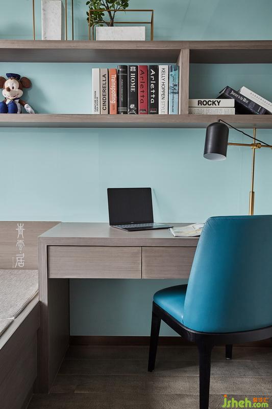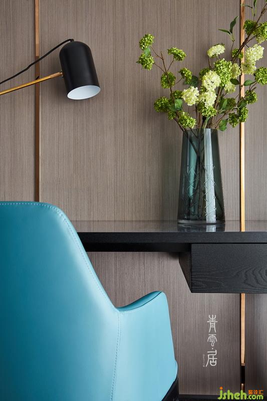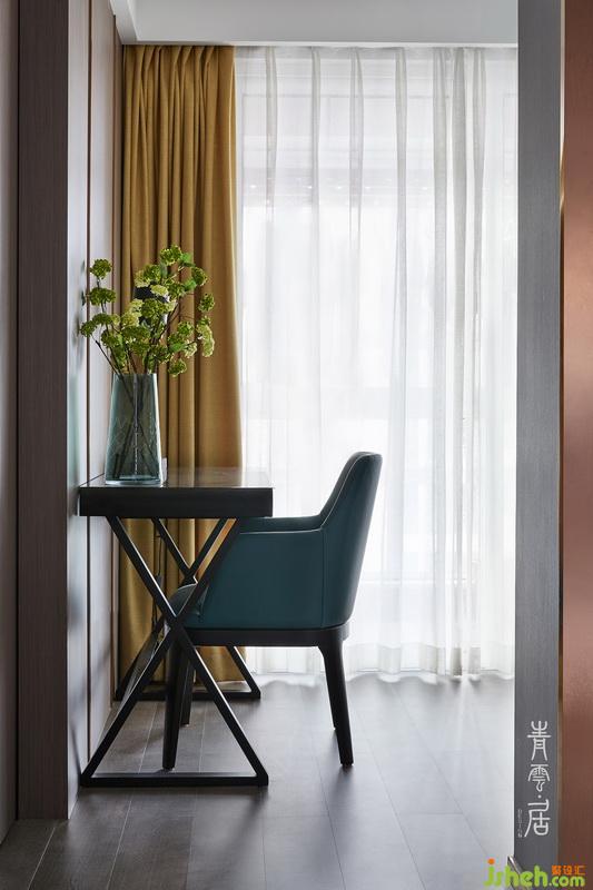 ▲主臥設(shè)計成了一個套間,進(jìn)門處是衣帽間+休息室的結(jié)合,香芋紫沙發(fā)與主臥顏色相互映襯,姜黃色點(diǎn)綴出舒服與活力間的平衡感。臨近陽臺擺放桌椅,光線充足,休息室兼具梳妝臺的空間。