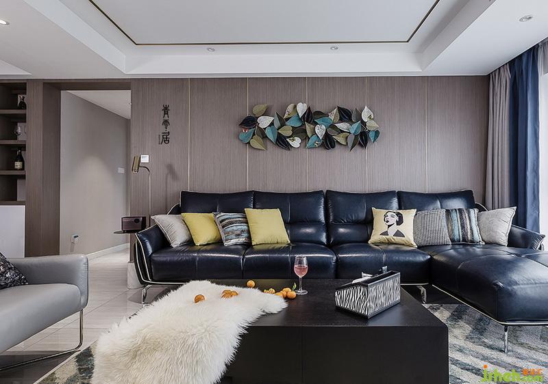 客廳在色彩上通過灰棕與黑白之間的對比協(xié)調追求一種具有普遍意義的永恒主題。沙發(fā)背景墻用的是飾面板+不銹鋼線條,相對來說比其他材質更時尚、溫馨協(xié)調。