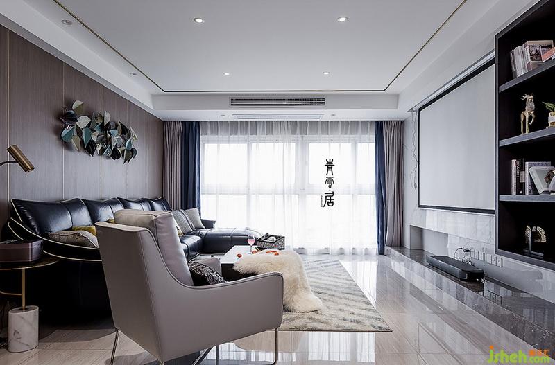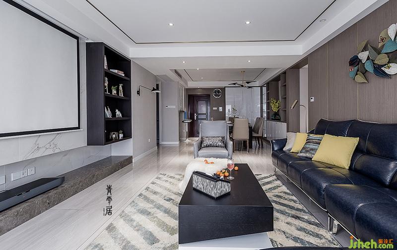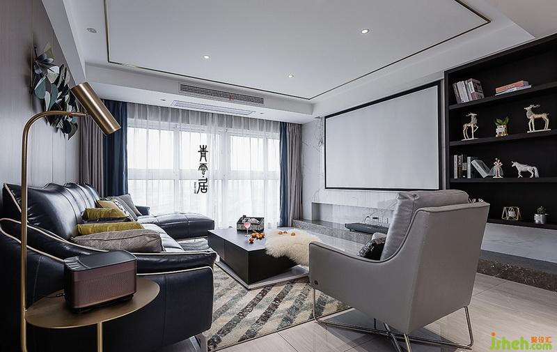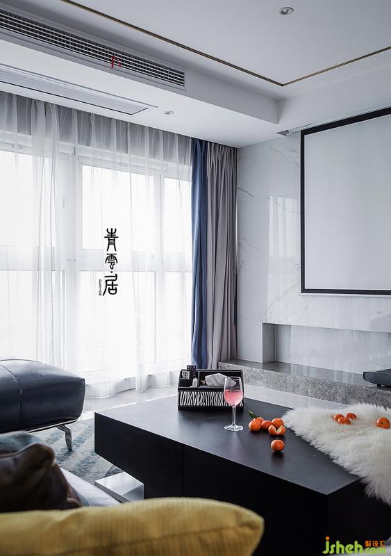 把傳統(tǒng)的電視機換為投影幕布,一家人閑暇時窩在沙發(fā)上看看電影,后面設計公司采用大理石紋瓷磚上墻,且用大理石做了電視柜。懸掛裝飾柜用來修飾,既不主張追求豪華復雜風,而著力表現(xiàn)區(qū)別與其它住宅的區(qū)別。