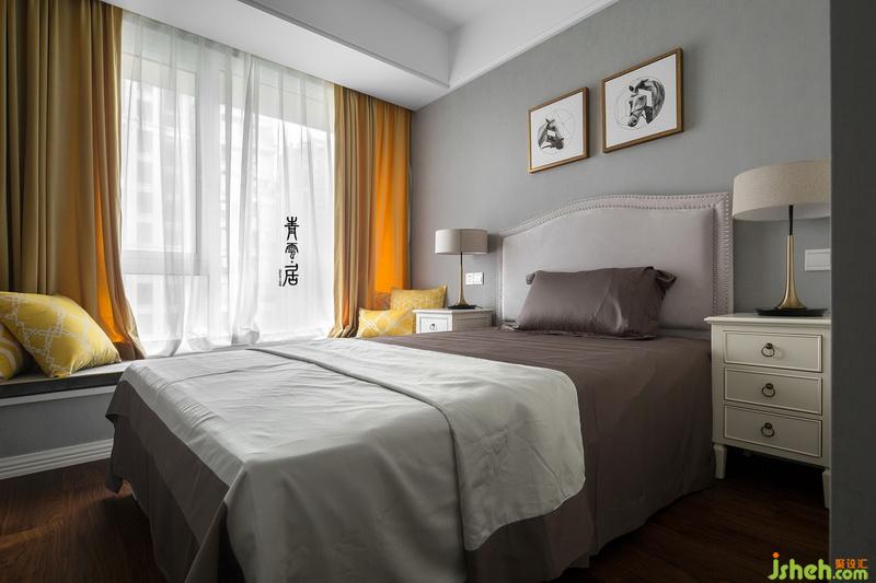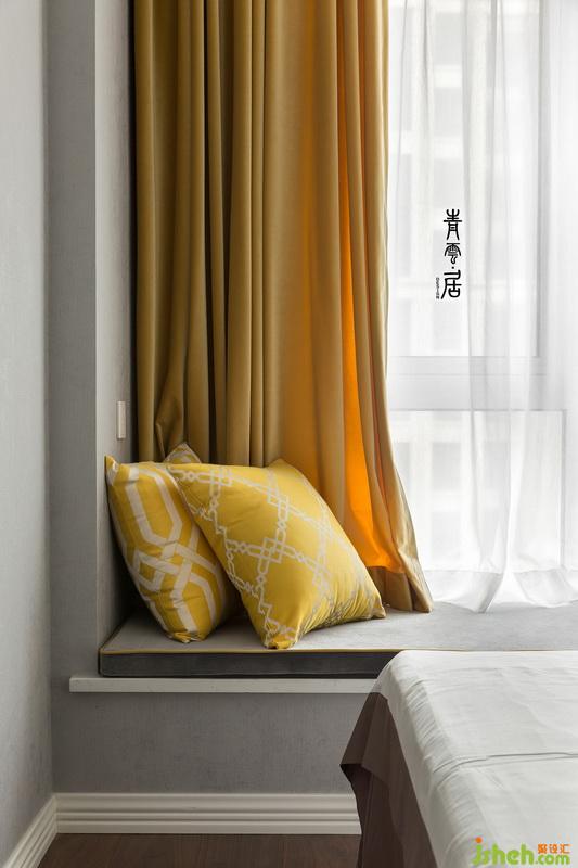 次臥設(shè)計公司同樣采用了莫蘭迪色系,在時尚與舒適間,達(dá)到平衡。精致的粉灰色,柔和的棕灰色,黃色的窗簾在空間中十分搶眼。