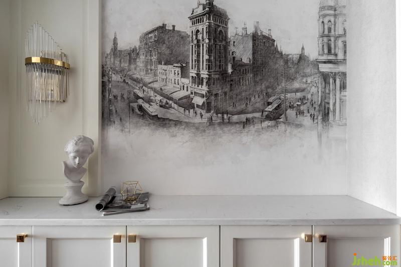 客餐廳定制款柜子是用貝殼鑲嵌制成,十分獨(dú)特的紋理給空間增加了時(shí)尚的視覺感受,珍珠般溫婉的光亮,讓人心情舒暢,沉醉其中。