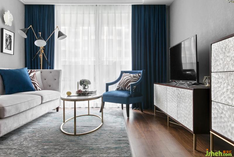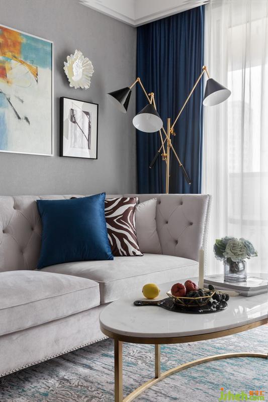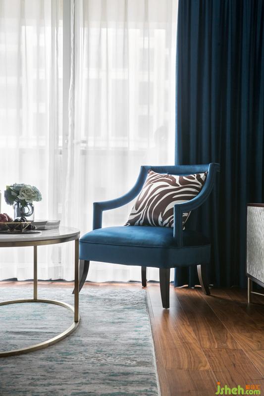 另外再以黑色立式臺(tái)燈穩(wěn)固空間的整體視感,以藍(lán)色調(diào)將層次鋪展,再加入耀眼的金色裝飾,優(yōu)雅一觸即發(fā)。