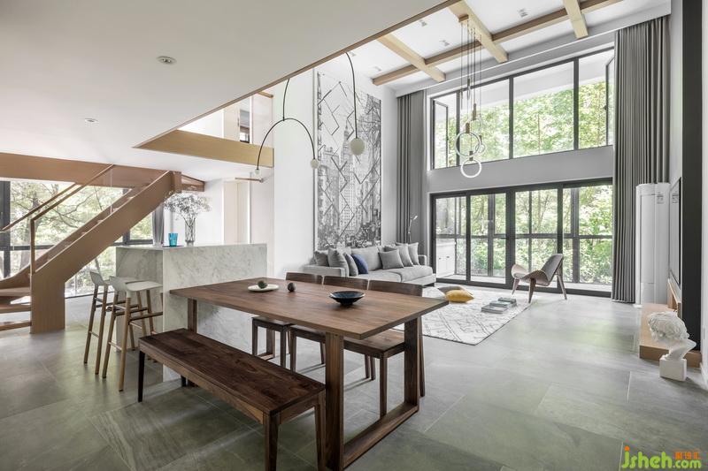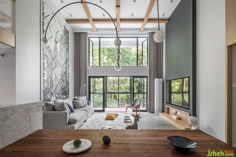 因?yàn)榧抑杏行『⒑烷L輩,在風(fēng)格的選擇上面,中和各成員意見,選擇了現(xiàn)代簡約風(fēng)格,大面積的落地窗,得以讓綠色肆意的展現(xiàn)在家中,穿插原木色,讓整個(gè)家里充滿溫馨感。這種設(shè)計(jì)的美,在于家庭和自然相結(jié)合,低調(diào)而內(nèi)斂又不失沉靜悠然?!凹彝ヅc自然”這個(gè)主題不僅貫穿始終,更是這個(gè)空間的靈魂。
