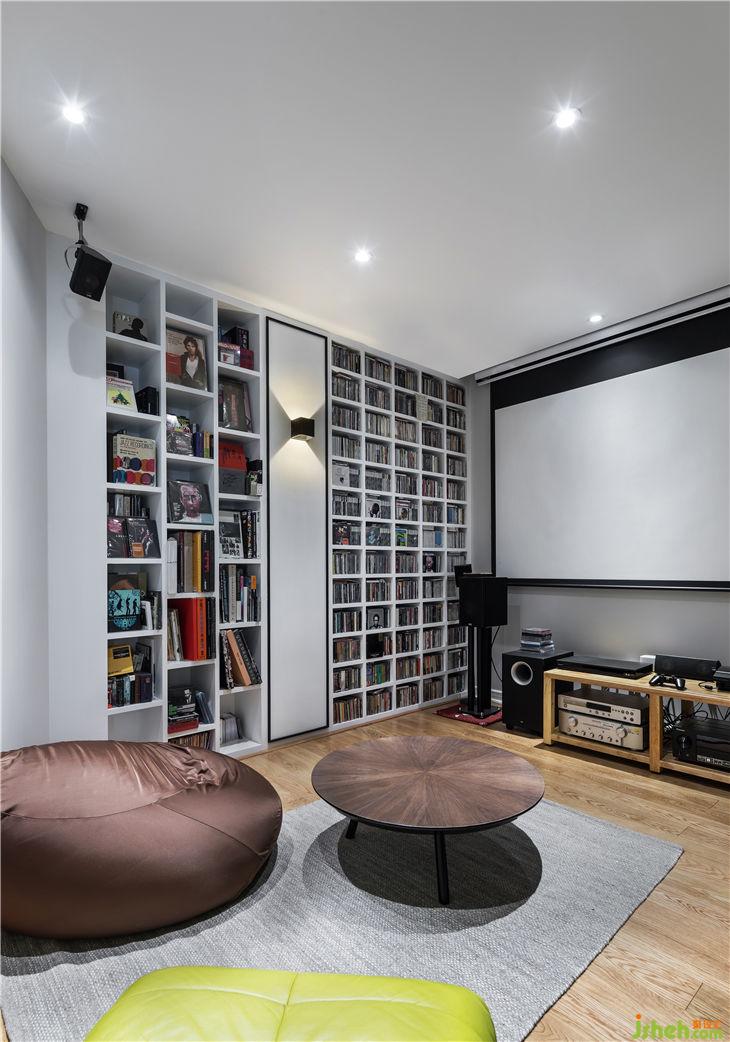 考慮到屋主不需要三個衛(wèi)生間后,減少一個衛(wèi)生間,擴大書房面積改動入門方向,并將書房與影音室功能相結(jié)合。