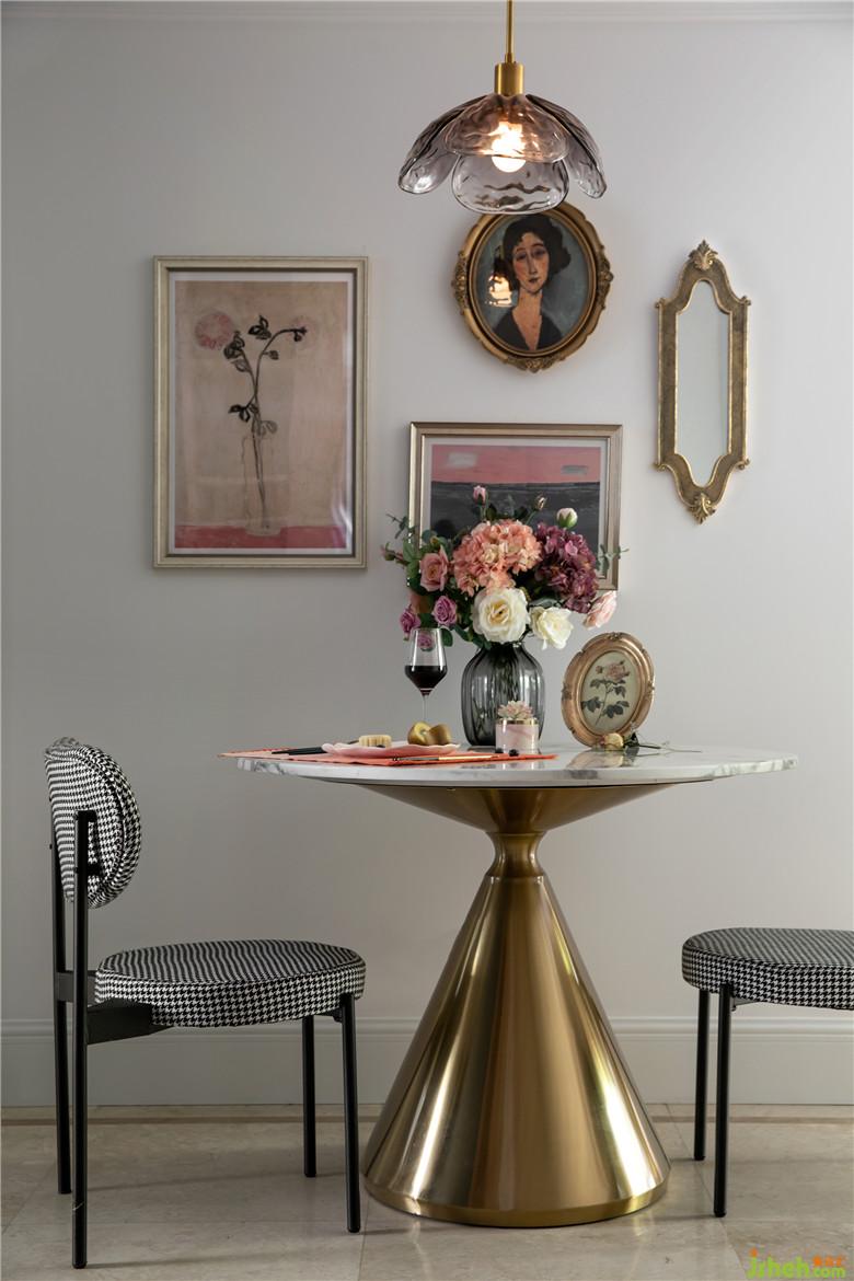 精致的生活很簡(jiǎn)單,賦予日常生活儀式感,享受過程,對(duì)待生活的每一處細(xì)節(jié)越是用心、認(rèn)真,內(nèi)心越會(huì)滿足。干凈漂亮的餐廳,金屬與大理石結(jié)合的餐桌,各種顏色的插花與組裝畫,作為空間的點(diǎn)綴,并提升整體空間的層次感。