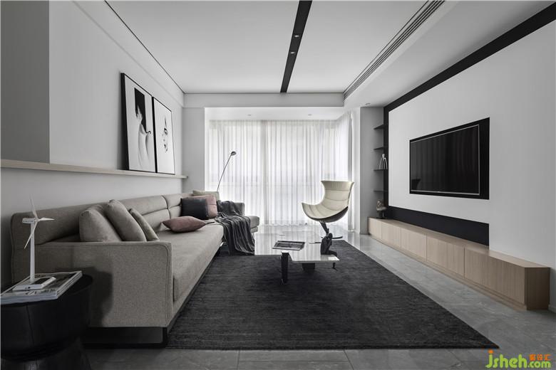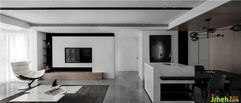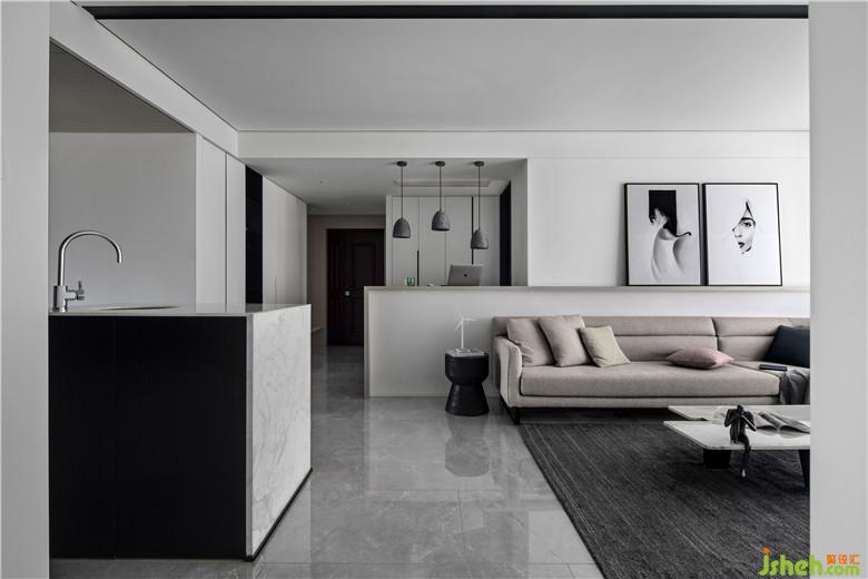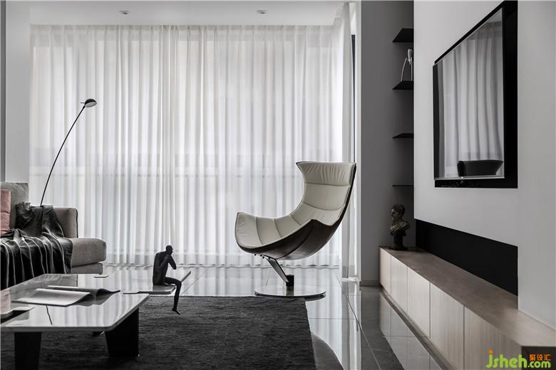 整個(gè)室內(nèi)設(shè)計(jì)以黑、白、灰為主調(diào),白色能呈現(xiàn)住宅的最自然純粹的本質(zhì),黑色則展現(xiàn)出現(xiàn)代硬朗與藝術(shù)前衛(wèi)的氣質(zhì),自然與藝術(shù)相平衡。干凈的線條是空間設(shè)計(jì)的主要特點(diǎn),呈現(xiàn)出利落與時(shí)尚的空間感。
