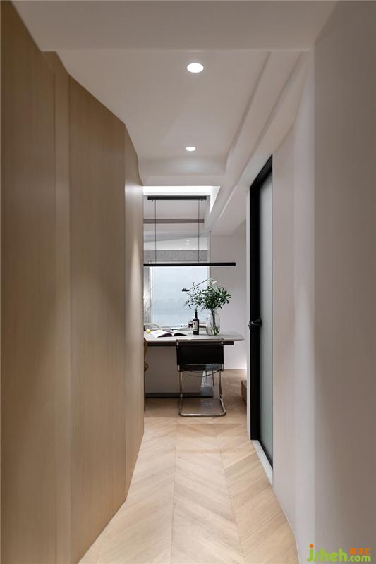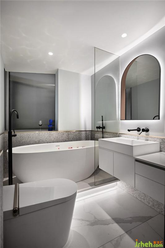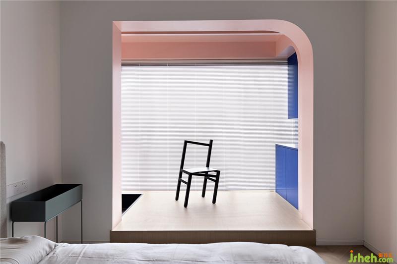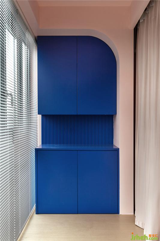 設(shè)計師選用藍色與粉色搭配,形成柔和的色彩撞擊,裝修設(shè)計采用弧形墻面設(shè)計增加藝術(shù)感。陽臺左側(cè)預(yù)留種植室內(nèi)觀賞植物。