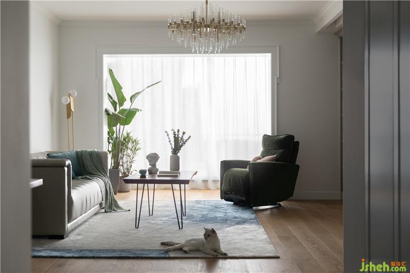 本案小區(qū)自帶恒溫、恒濕、恒氧的系統(tǒng)功能,設(shè)計師為了讓環(huán)境與人親密接觸、息息相關(guān),將原有的陽臺納入客廳,使客廳更加通透明亮。