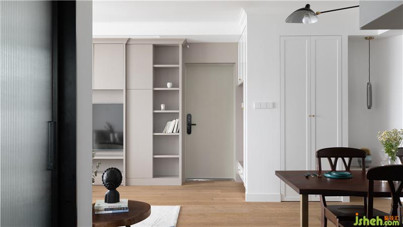The shoe and hat room designed at the entrance, interspersed with the apartment type and the volume at the corner, not only gives the space an artistic sense, softens the overall toughness, but also provides a second fill of light between the shoes and hats that were not originally lit.