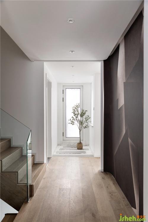 立體感壁畫,打破單調(diào)性;遠處地面做了青石板汀步,打破常規(guī)性;杭州別墅裝飾盡頭加入綠植,增強視覺感官效果。