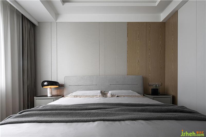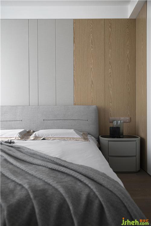 臥室則是經(jīng)典的灰色、白色和木色組成