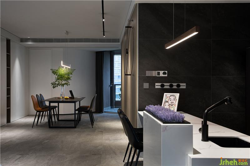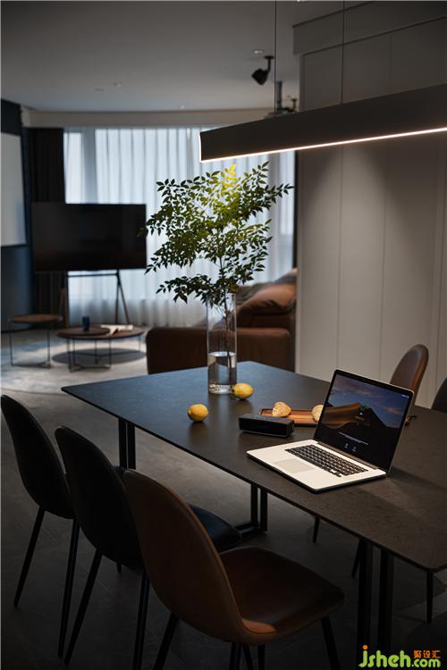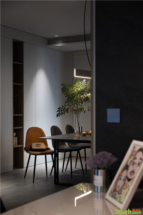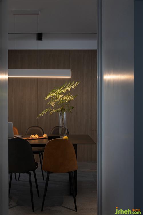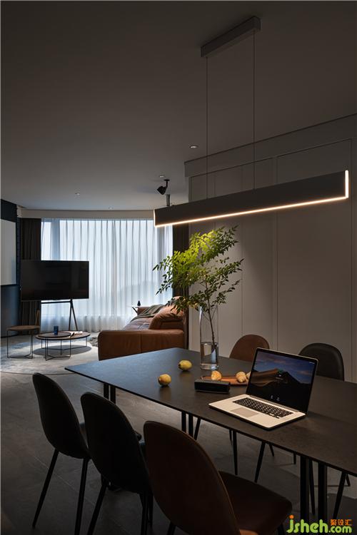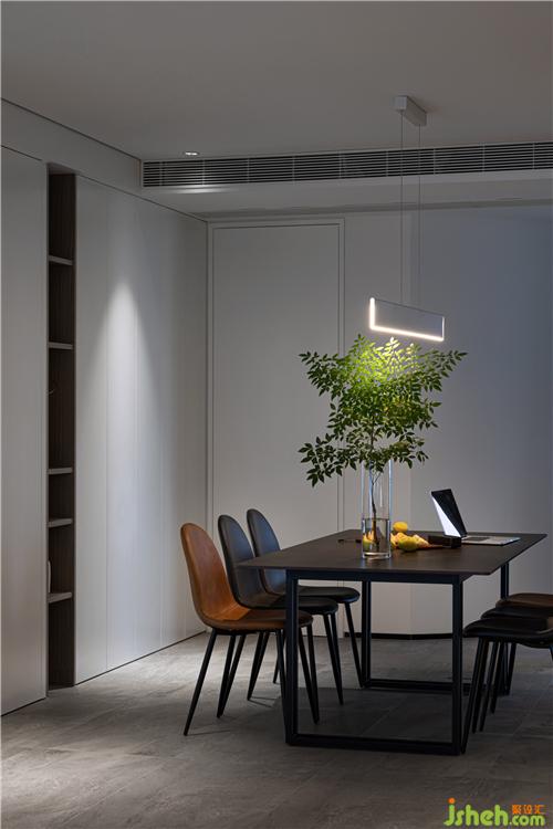 開(kāi)放式的客餐廳拓寬了視野,將空間尺度拉升到極致,利用每一個(gè)角落,搭配白色長(zhǎng)吊燈,杭州裝修設(shè)計(jì)讓視線由遠(yuǎn)及近,借助客廳的光,形成補(bǔ)光效果。
